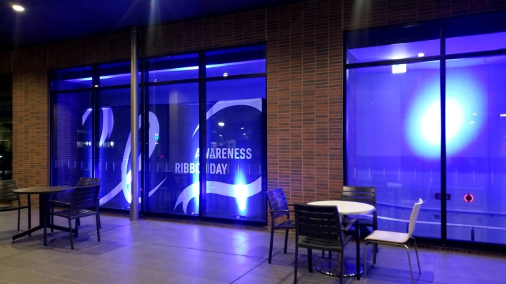 山口県では海峡ゆめタワーと当院ガレリアエントランスを世界脳卒中機構のシンボルカラーである