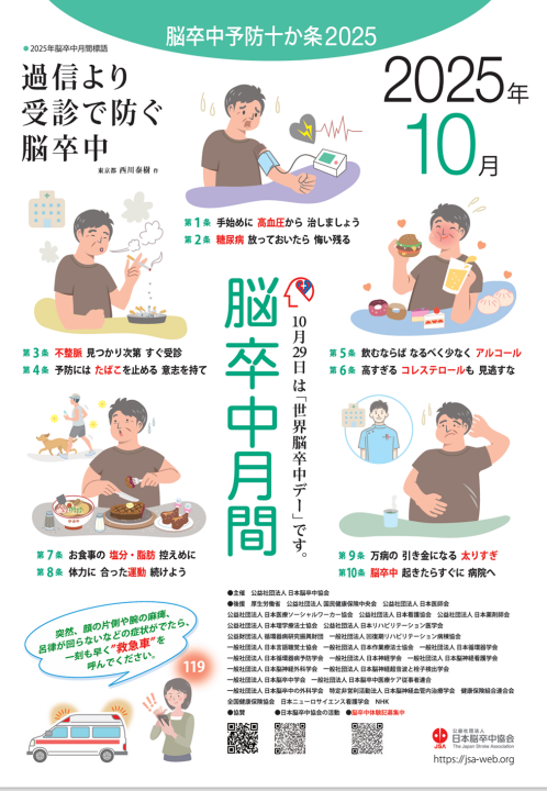 毎年10月29日を世界脳卒中デーとし、脳卒中予防の重要性を全世界に呼びかけています。